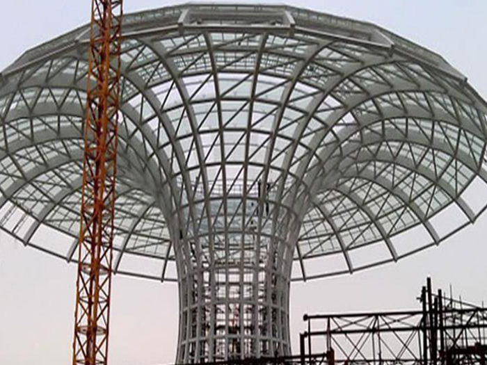 二、球形网架结构因其结构新颖,受力合理,自重轻、用钢量低等优点。如大型体育场馆球形项城螺栓球网架、公共场馆球形网架、电厂项城螺栓球网架、水泥工业球形网架、仓储物流球形网架、项城干煤棚工业球形网架、项城收费站项城加油站球形网架、展览中心、影剧院、商场、航站楼、候车厅、工厂项城车间、仓库、电视塔等球形螺栓球节点网架。国内球形网架结构主要分为:项城焊接球节点网架及螺栓球节点网架两种。螺栓球节点网架其构件工厂内加工量较大,现场安装便捷,适用于现场工期紧,项城施工条件、用电量受制约,网架形状复杂、项城杆件定位困难的异形结构。螺栓球节点球形网架系统基本由项城杆件、螺栓球、支撑支座等组成。按照节点形式可分为交叉项城桁架体系、四角锥体系、三角锥体系等。支撑方式多为固定支座支撑。对于大面积、大跨度及有特殊受力或伸缩要求的网架结构可采用橡胶支座、滑移支座、球铰支座等支撑形式,以满足结构自身的受力稳定、均衡,便于内力释放等设计要求。